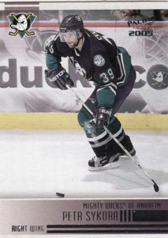 The Petr Sykora 2004 Pacific #9 Base card is 1 of 3 Petr Sykora's card variations in the 2004 Pacific set being tracked by Sports Card Investor, including Red, and Blue /250.
