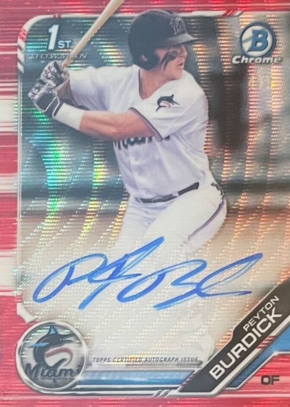 Auctions Ending Soon for Peyton Burdick 2019 Bowman Draft #CDA-PB Chrome DP Auto - Red Wave Refractor /5 (1st) RAW