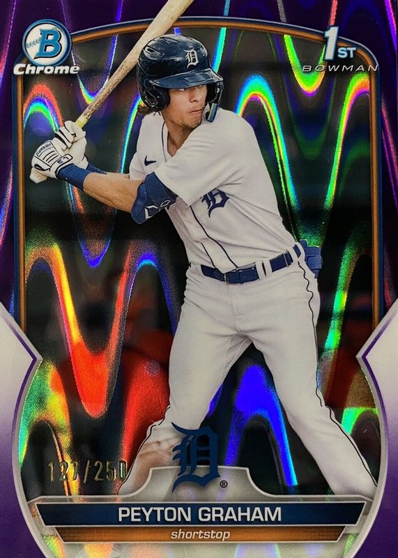 Auctions Ending Soon for Peyton Graham 2023 Bowman #BCP-57 Chrome Prospects - Purple RayWave Refractor /250 (1st) RAW