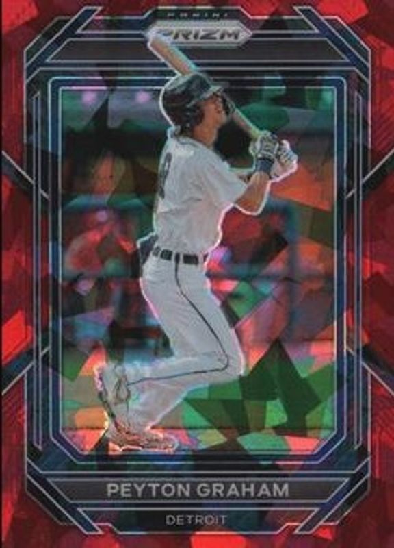 The Peyton Graham 2023 Prizm #79 Red Ice card is 1 of 26 Peyton Graham's card variations in the 2023 Prizm set being tracked by Sports Card Investor, including Base, Blue Ice, Giraffe, Green Ice, and Hyper.