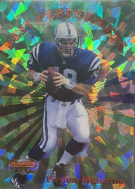 This card is 1 of 6 Peyton Manning's card variations in the 1998 Bowman's Best set being tracked by Sports Card Investor, including Base, Refractor /400, Atomic Refractor /100, Best Performers, and Best Performers - Refractor /200.