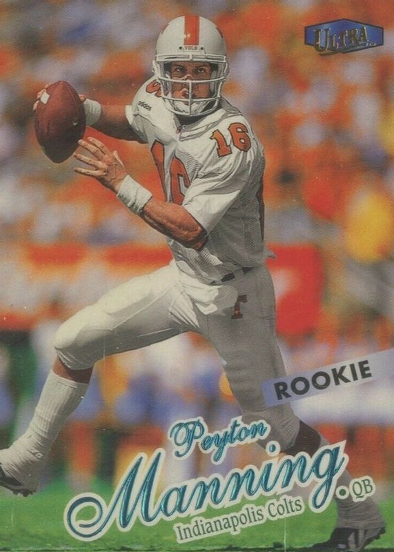 The Peyton Manning 1998 Fleer Ultra #201 Base Rookie card in Raw condition has moved up $13.99 (+254%) in the last 30 days and was last sold for $19.49 .