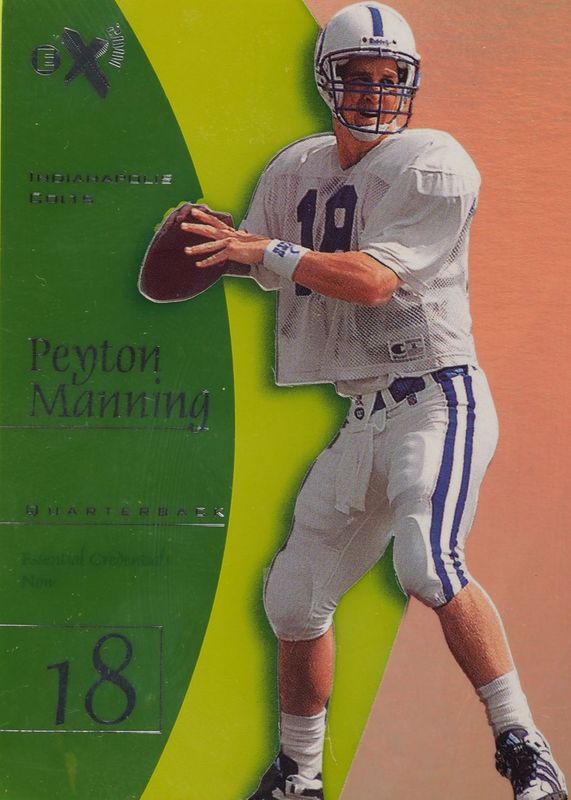The Peyton Manning 1998 Skybox E-X2001 #54 Essential Credentials Now (/54) Rookie card in Raw condition has not changed in price in the last 30 days and was last sold for $1,102.00 .
