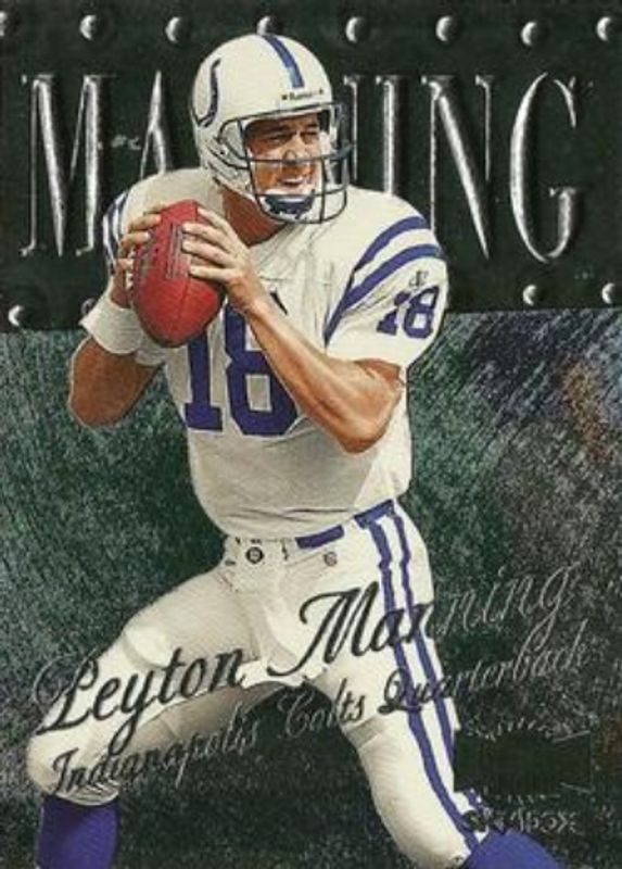 The Peyton Manning 1999 Metal Universe #77 Base card is 1 of 5 Peyton Manning's card variations in the 1999 Metal Universe set being tracked by Sports Card Investor, including Precious Metal Gems /50, Precious Metal Gems - Gem Masters /1, Planet Metal, and Linchpins.