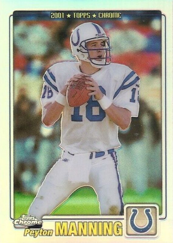 The Peyton Manning 2001 Topps Chrome #98 Refractor /999 card in Raw condition has moved up $20.00 (+36.4%) in the last 30 days and was last sold for $75.00 .