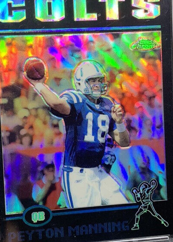 This card is 1 of 6 Peyton Manning's card variations in the 2004 Topps Chrome set being tracked by Sports Card Investor, including Base, Weekly Wrap Up, Refractor, Weekly Wrap Up - Refractor, and Weekly Wrap Up - Black Refractor /100.
