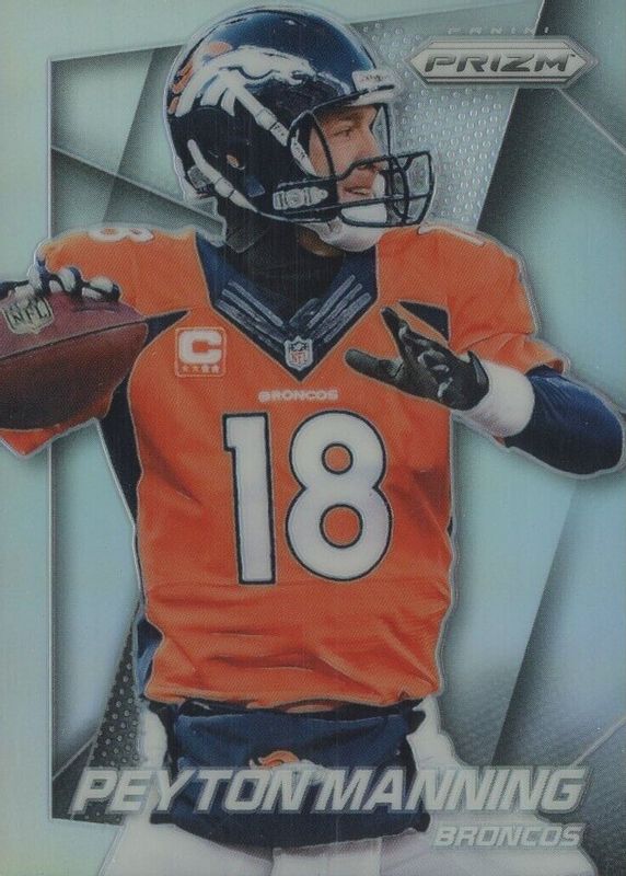 The Peyton Manning 2014 Prizm #58 Silver card in Raw condition has moved up $5.00 (+25.0%) in the last 30 days and was last sold for $25.00 .
