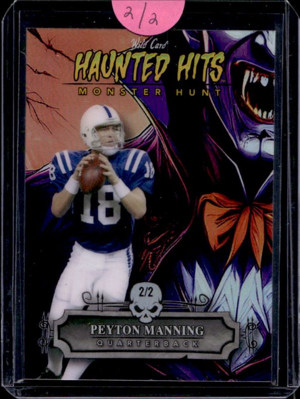 Peyton Manning 2024 Wild Card Haunted Hits Promo #HHD-PM Haunted Hits Dracula Rainbow Purple /2 RAW Price Guide