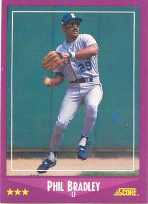 The Phil Bradley 1988 Score #66 Glossy card is 1 of 2 Phil Bradley's card variations in the 1988 Score set being tracked by Sports Card Investor, including Base.