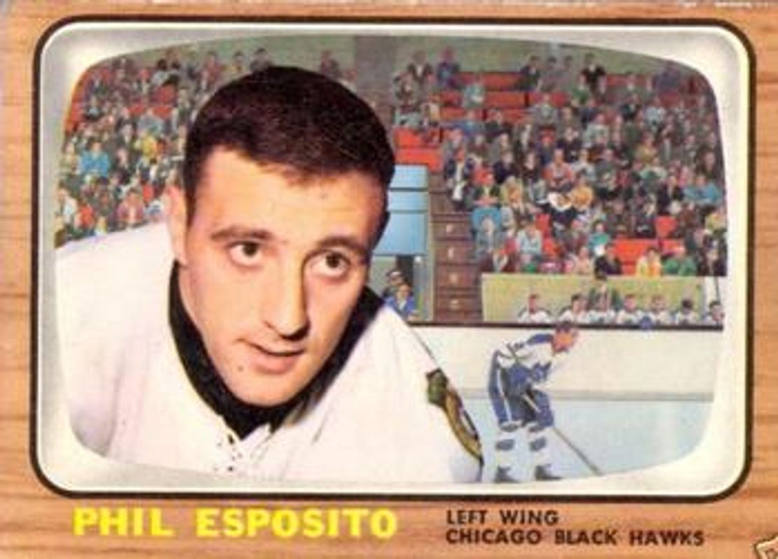 The Phil Esposito 1966 Topps #63 Base card is 1 of 2 Phil Esposito's card variations in the 1966 Topps set being tracked by Sports Card Investor, including Base.