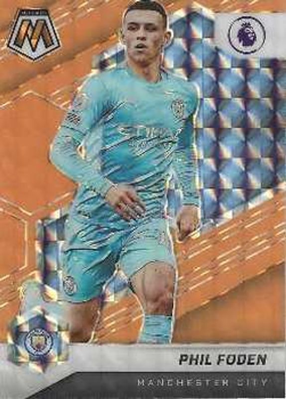 Phil Foden 2021 Mosaic Premier League #17 Orange Fluorescent RAW Price Guide