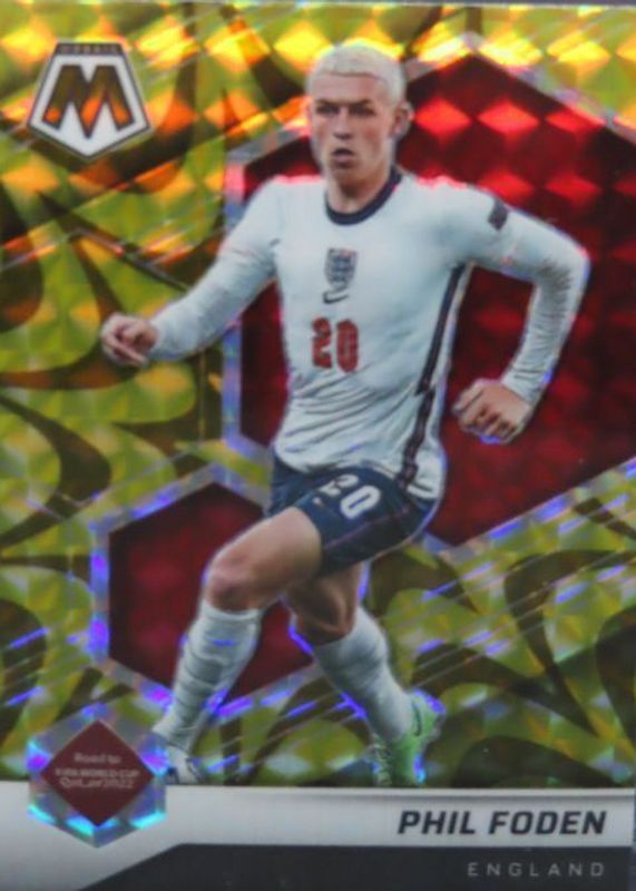 2021-22 Mosaic FIFA Road To World Cup Phil Foden Gold Reactive Prizm #39 England