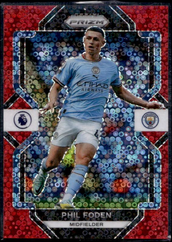 The Phil Foden 2022 Prizm Premier League #1 Breakaway Red /49 card is 1 of 73 Phil Foden's card variations in the 2022 Prizm Premier League set being tracked by Sports Card Investor, including Base, Breakaway, Choice Blue Yellow Green, Green Ice, and Green Pulsar.