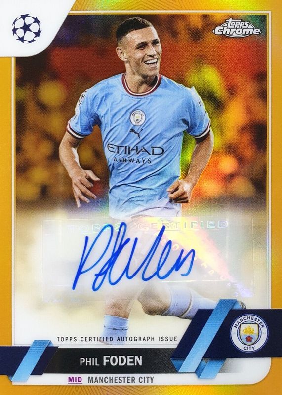 Auctions Ending Soon for Phil Foden 2022 Topps Chrome UEFA Club Competitions #CA-PF Autographs - Gold Refractor /50 RAW