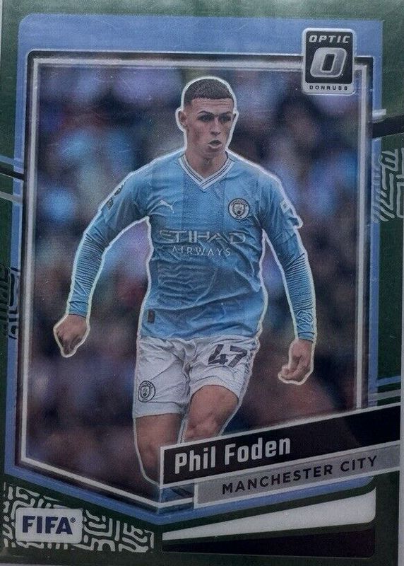 The Phil Foden 2023 Donruss #88 Optic - Green /5 (Club) card in Raw condition has not changed in price in the last 30 days and was last sold for $35.00 .