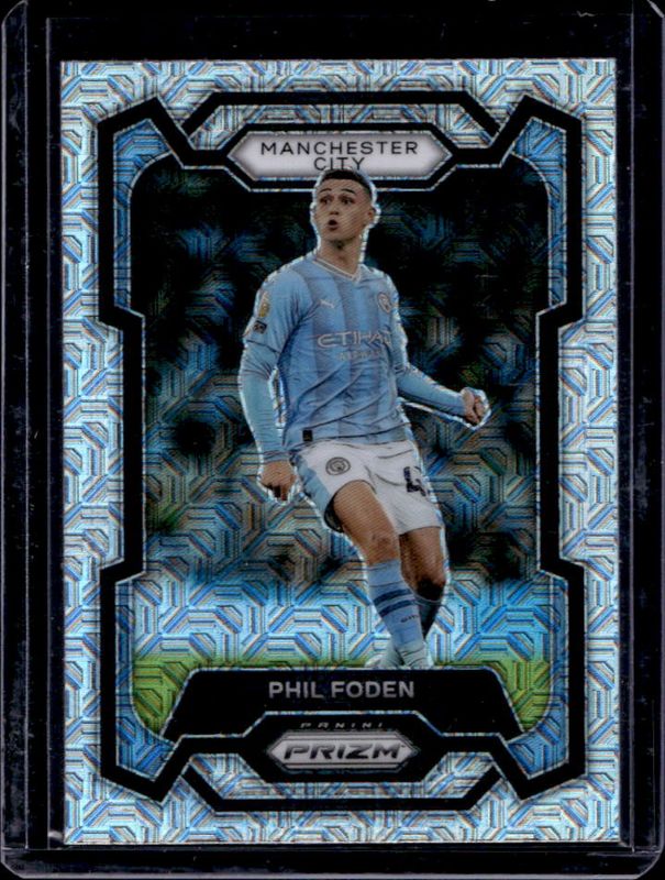 The Phil Foden 2023 Prizm Premier League #2 Mojo card is 1 of 71 Phil Foden's card variations in the 2023 Prizm Premier League set being tracked by Sports Card Investor, including Base, Blue Mosaic, Breakaway, Breakaway Orange, and Choice.