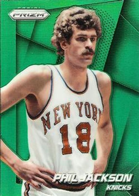 The Phil Jackson 2014 Prizm #236 Green card is 1 of 18 Phil Jackson's card variations in the 2014 Prizm set being tracked by Sports Card Investor, including Base, Blue Green Mosaic, Blue Mojo, Blue Wave, and Red White Blue Pulsar.