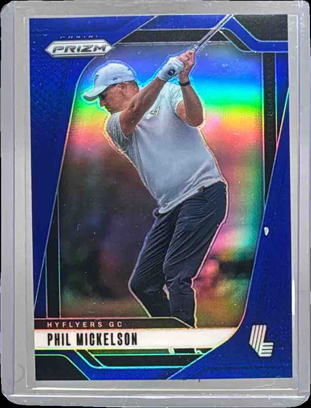 The Phil Mickelson 2025 Prizm LIV #40 Blue /99 card is 1 of 161 Phil Mickelson's card variations in the 2025 Prizm LIV set being tracked by Sports Card Investor, including Base, Checkerboard, Giraffe, Orange Tiger, and Pulsar.