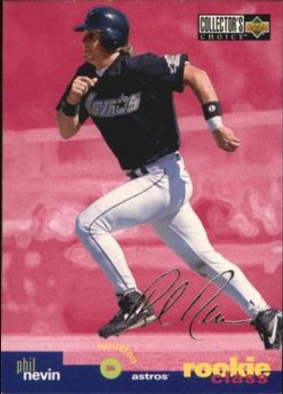 The Phil Nevin 1995 Upper Deck Collector's Choice #9 Silver Signatures Rookie card is 1 of 3 Phil Nevin's card variations in the 1995 Upper Deck Collector's Choice set being tracked by Sports Card Investor, including Base, and Gold Signatures.