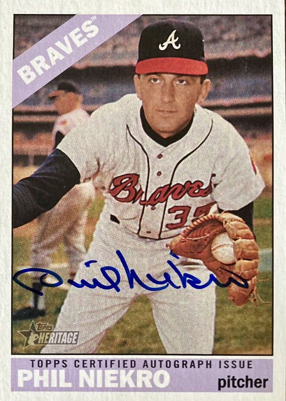 This card is 1 of 2 Phil Niekro's card variations in the 2015 Topps Heritage set being tracked by Sports Card Investor, including Real One Autographs - Red Ink /66.
