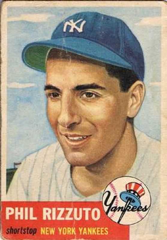 The Phil Rizzuto 1953 Topps #114a Base card is 1 of 3 Phil Rizzuto's card variations in the 1953 Topps set being tracked by Sports Card Investor, including #114 Base, and #114b Base.
