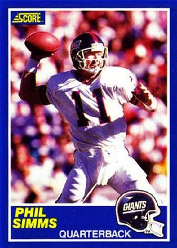 The Phil Simms 1989 Score #6 Base card is 1 of 2 Phil Simms' card variations in the 1989 Score set being tracked by Sports Card Investor, including Promos.