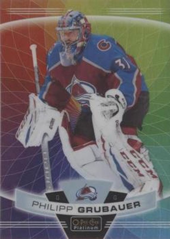 The Philipp Grubauer 2019 O-Pee-Chee Platinum #2 Rainbow Color Wheel card is 1 of 18 Philipp Grubauer's card variations in the 2019 O-Pee-Chee Platinum set being tracked by Sports Card Investor, including Base, Matte Pink, Rainbow, Sunset, and Violet Pixels /399.