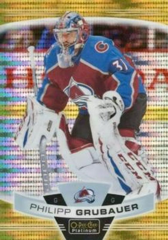 The Philipp Grubauer 2019 O-Pee-Chee Platinum #2 Seismic Gold /50 card is 1 of 18 Philipp Grubauer's card variations in the 2019 O-Pee-Chee Platinum set being tracked by Sports Card Investor, including Base, Matte Pink, Rainbow, Sunset, and Violet Pixels /399.