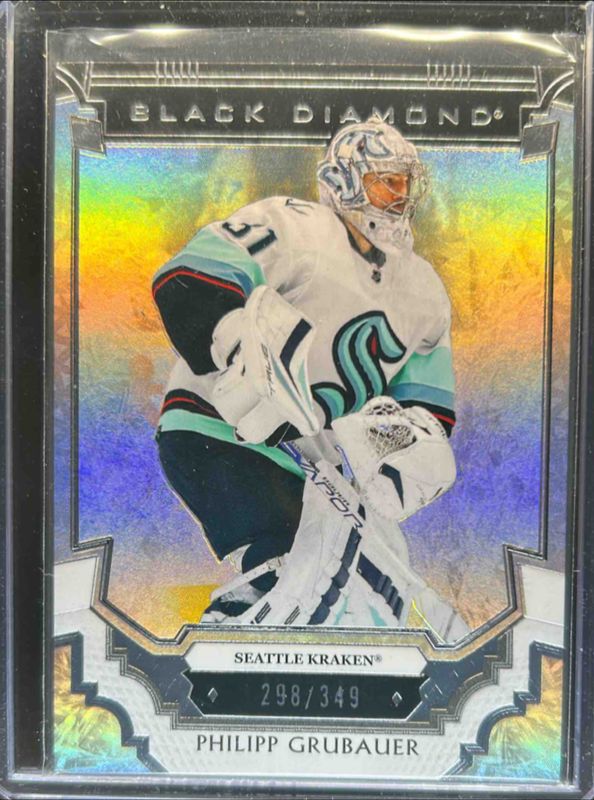 The Philipp Grubauer 2023 Upper Deck Black Diamond #BDB-PG Base /349 card is 1 of 8 Philipp Grubauer's card variations in the 2023 Upper Deck Black Diamond set being tracked by Sports Card Investor, including Red /75, Blue /25, Green /10, Diamond Relics /5, and Pure Black Premium Relics /5.