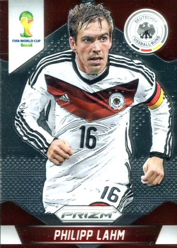 This card is 1 of 13 Philipp Lahm's card variations in the 2014 Prizm World Cup set being tracked by Sports Card Investor, including Blue & Red Wave, Red White Blue Power Plaid, Silver, Yellow & Red Pulsar, and Blue /199.