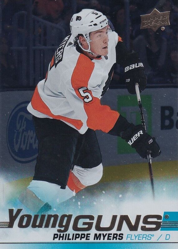 This card is 1 of 7 Philippe Myers' card variations in the 2019 Upper Deck set being tracked by Sports Card Investor, including Young Guns Base, Young Guns - Clear Cut, Young Guns - Clear Cut Exclusives, Young Guns - Speckled Rainbow Foil, and Young Guns - UD Exclusives /100.