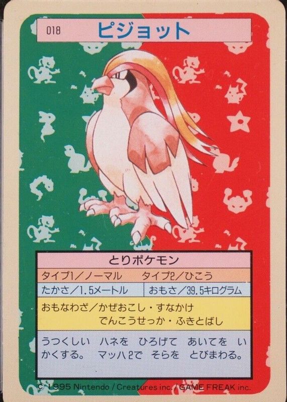 Pidgeot 1997 Japanese Topsun #018 Green Back (2nd Edition) RAW TCG (HEAVILY PLAYED) Price Guide