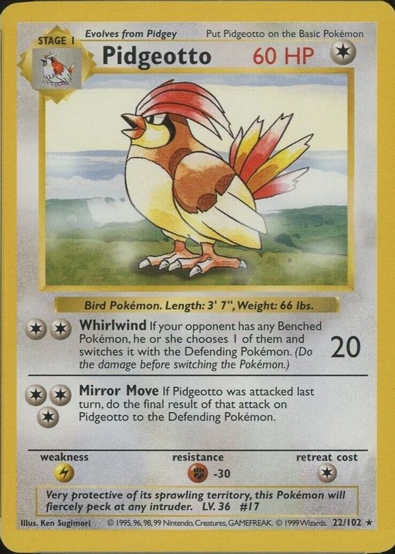 Best Prices Available For Sale of Pidgeotto 1999 Pokemon Game #22 Shadowless