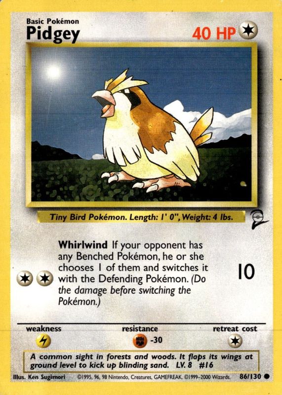 Pidgey 2000 Base Set 2 #86/130 Base RAW TCG (LIGHTLY PLAYED) Price Guide