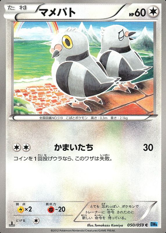 The Pidove 2012 Japanese Black & White: Freeze Bolt #050/059 1st Edition card in Raw TCG (Near Mint) condition has moved down -$0.02 (-0.4%) in the last 30 days and was last sold for $5.35 .