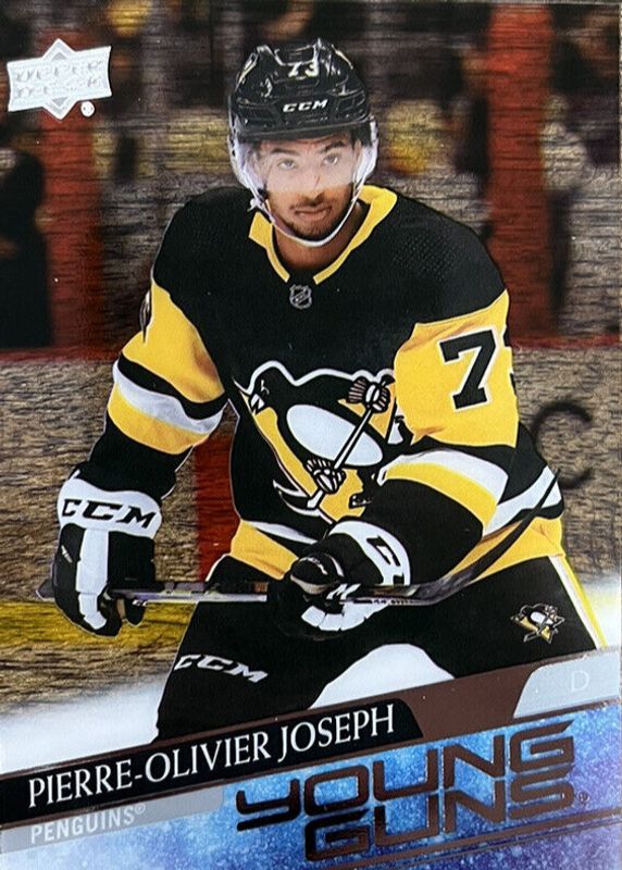 This card is 1 of 9 Pierre-Olivier Joseph's card variations in the 2020 Upper Deck set being tracked by Sports Card Investor, including Young Guns Base, Young Guns - Clear Cut Exclusives, Young Guns - French, Young Guns - Jumbo, and Young Guns - Silver Foil.