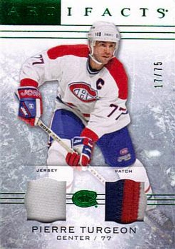 The Pierre Turgeon 2014 Upper Deck Artifacts #81 Jersey Patch - Emerald /75 card is 1 of 11 Pierre Turgeon's card variations in the 2014 Upper Deck Artifacts set being tracked by Sports Card Investor, including Base /999, Ruby /499, Emerald /99, Sapphire /85, and Gold Spectrum /25.