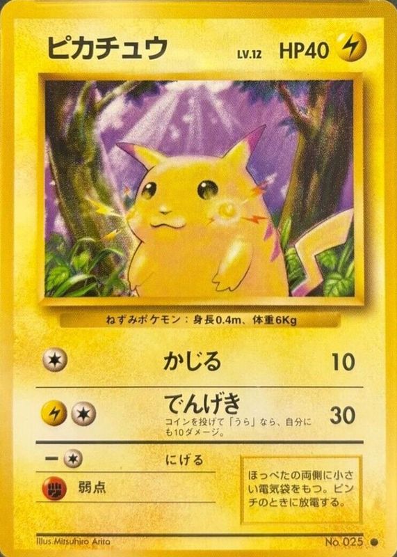 The Pikachu 1996 Japanese Base Set #25 Base - No Rarity Symbol card in Raw TCG (Lightly Played) condition has not changed in price in the last 30 days and was last sold for $74.99 .