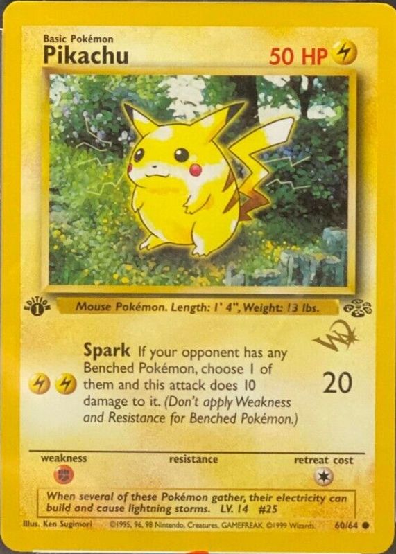 Pokémon TCG PIKACHU 1ST EDITION Jungle Promo “W” Stamped 60/64 NM