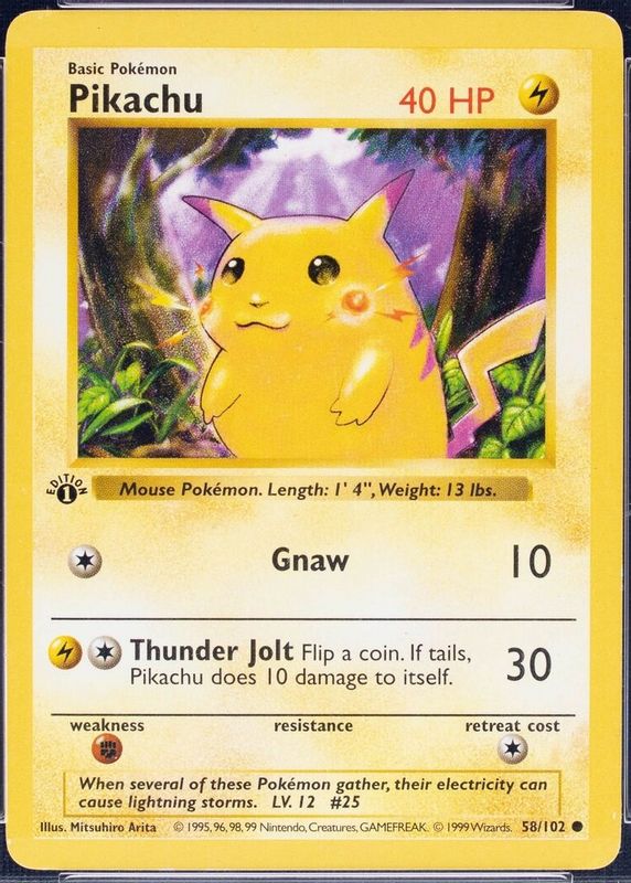 Best Prices Available For Sale of Pikachu 1999 Pokemon Game #58 1st Edition (Red Cheeks)