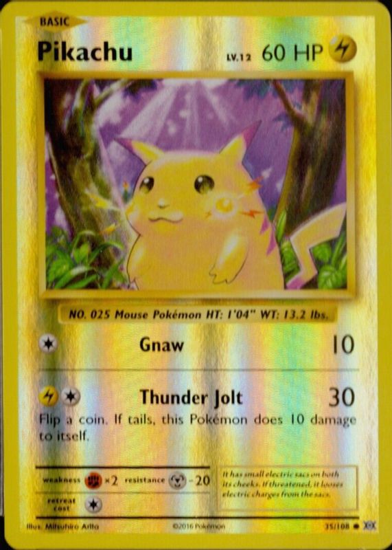 The Pikachu 2016 XY: Evolutions #35 Reverse Holo card in Raw TCG (Near Mint) condition has moved up $1.01 (+20.2%) in the last 30 days and was last sold for $6.00 .