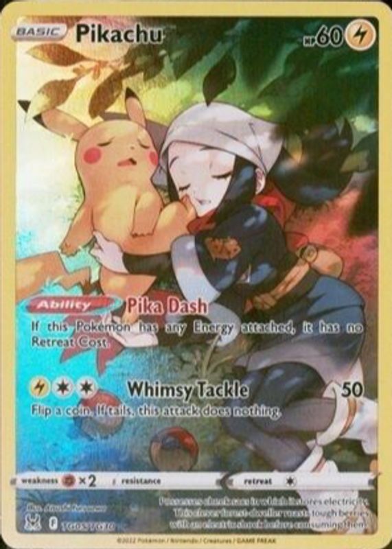 The Pikachu 2022 Sword & Shield: Lost Origin #TG05/TG30 Trainer Gallery card in Raw TCG (Near Mint) condition has moved down -$1.14 (-4.8%) in the last 30 days and was last sold for $22.53 .