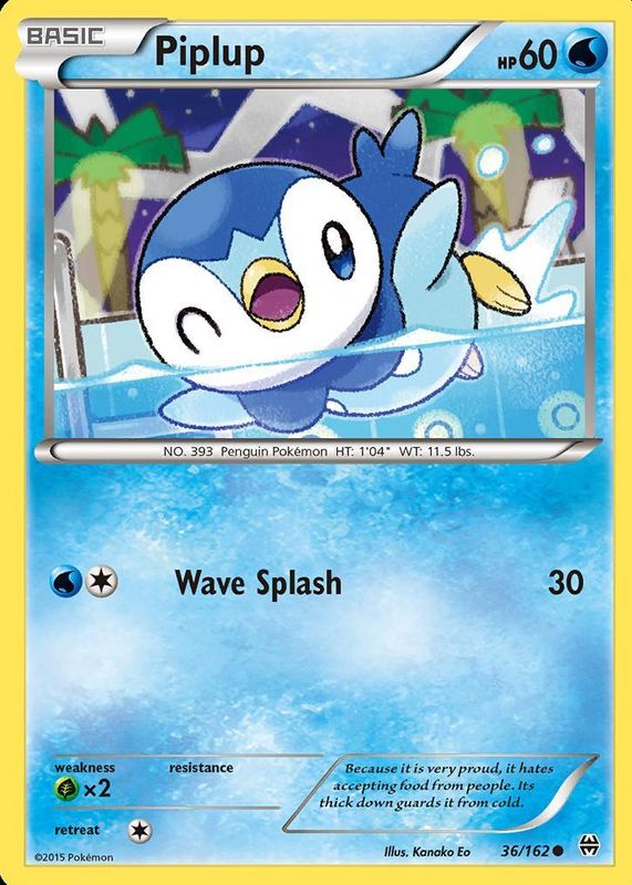 The Piplup 2015 XY: BREAKthrough #036/162 Base card in Raw TCG (Lightly Played) condition has moved up $0.39 (+19.5%) in the last 30 days and was last sold for $2.39 .