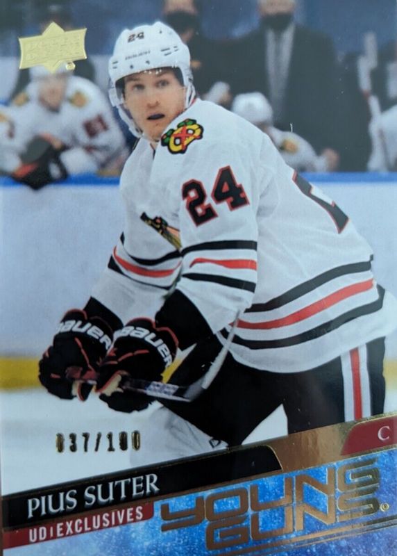 The Pius Suter 2020 Upper Deck #484 Young Guns - UD Exclusives /100 Rookie card in Raw condition has not changed in price in the last 30 days and was last sold for $21.00 .
