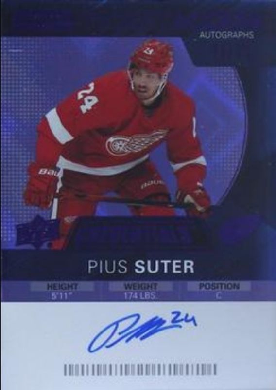 The Pius Suter 2021 Upper Deck Credentials #DTAA-PS 2020 Debut Ticket Access Auto - Purple /3 card is 1 of 20 Pius Suter's card variations in the 2021 Upper Deck Credentials set being tracked by Sports Card Investor, including 2020 Debut Ticket Access /999, 2020 Debut Ticket Access - Yellow /249, 2020 Acetate Debut Ticket Access /199, 2020 Debut Ticket Access - Red /199, and 2020 Debut Ticket Access - Orange /149.