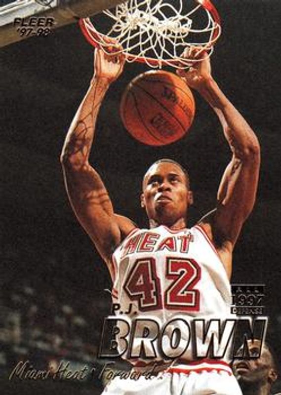The PJ Brown 1997 Fleer #182 Base card is 1 of 3 PJ Brown's card variations in the 1997 Fleer set being tracked by Sports Card Investor, including Crystal, and Tiffany.