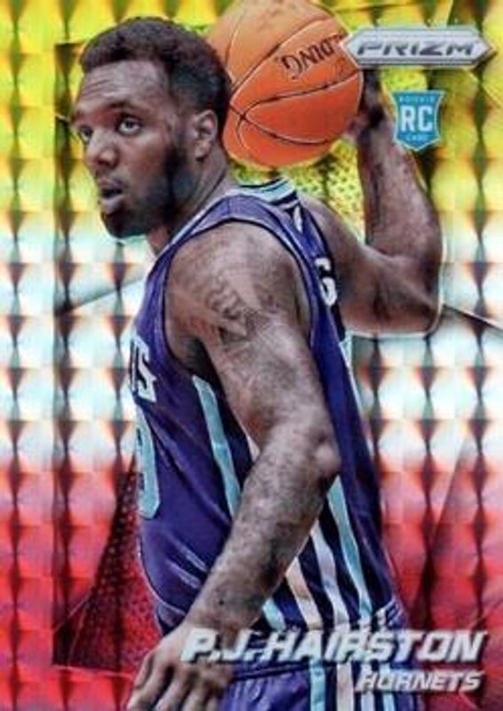 The PJ Hairston 2014 Prizm #272 Yellow & Red Mosaic Rookie card is 1 of 25 PJ Hairston's card variations in the 2014 Prizm set being tracked by Sports Card Investor, including Base, Blue Green Mosaic, Blue Mojo, Blue Wave, and Green.