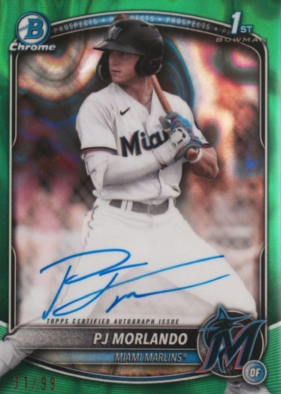2025 Bowman 1st PJ MORLANDO Chrome Green Lava Refractor Auto /99 - Marlins