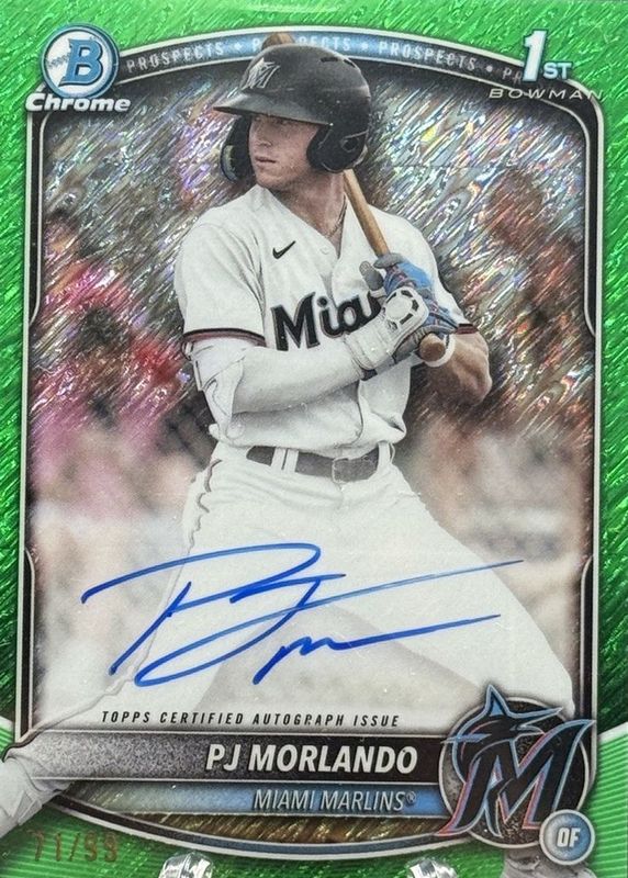 PJ Morlando Bowman Auto 2025 1st Chrome Green Shimmer /99 (SP,AU,RC) Marlins
