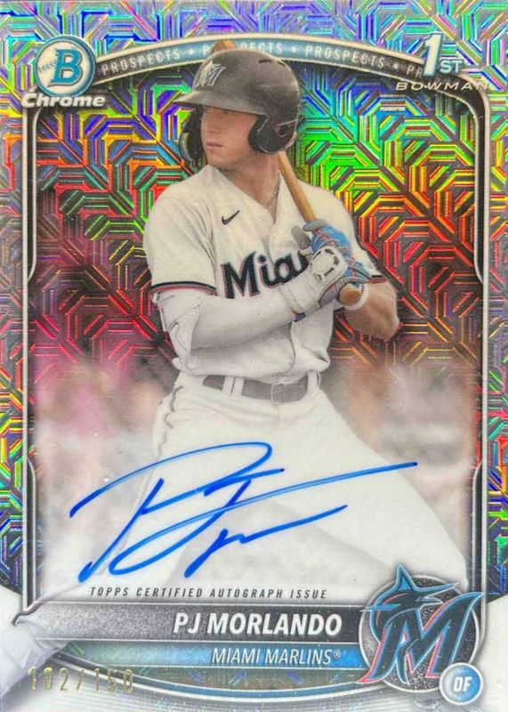 2025 Bowman Chrome PJ Morlando 1st Prospect Auto HTA Choice #/150 Marlins Mojo